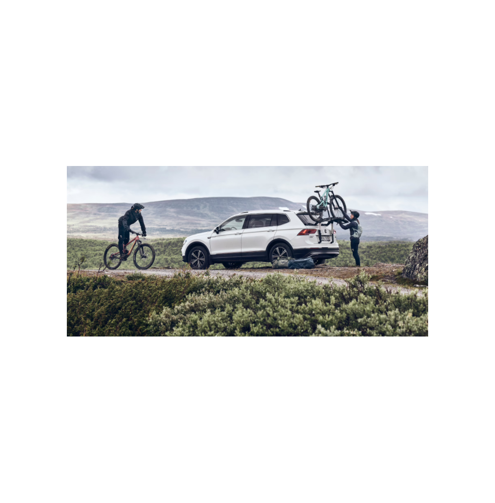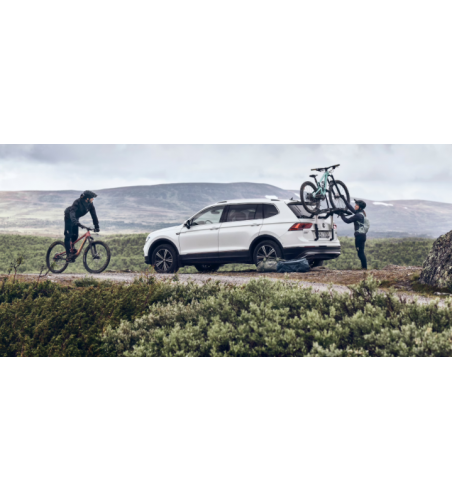 Portabici posteriore premium con piattaforma rialzata per mantenere visibili le luci posteriori e la targa e facilitare le escursioni.