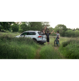 Montaggio semplice delle bici mediante i bracci regolabili/amovibili e i pomelli del limitatore di coppia Thule AcuTight che scattano in posizione quando viene raggiunta la coppia di serraggio ottimale