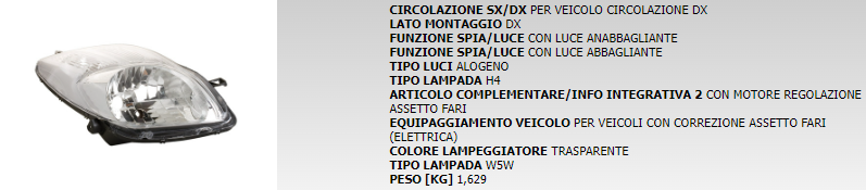 FARO ANTERIORE DX TOYOTA YARIS NUOVO VALEO COD. 043933