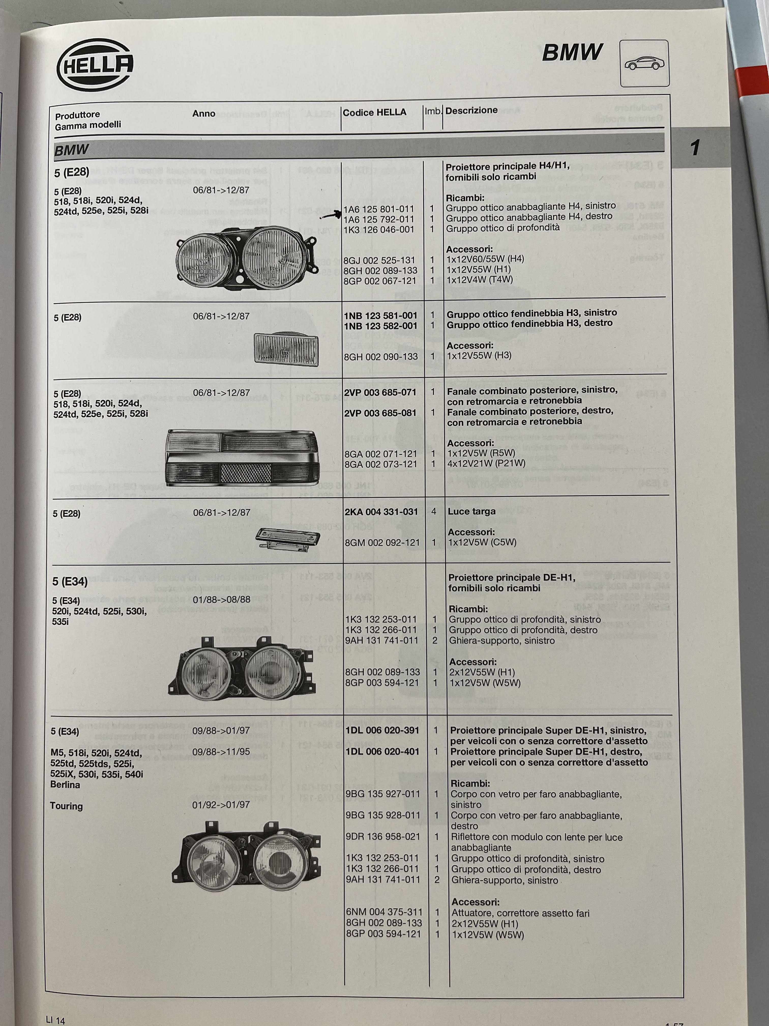 GRUPPO OTTICO ANABBAGLIANTE SINISTRO HELLA COD. 1A6125801011