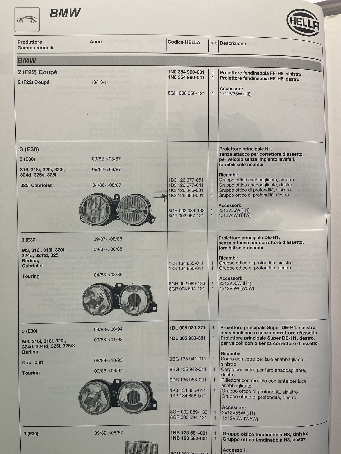 GRUPPO OTTICO PROFONDITA' ANTERIORE SINISTRO HELLA COD. 1K3126680001