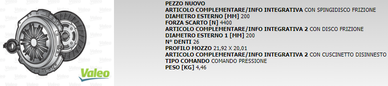 KIT FRIZIONE NUOVA VALEO COD. 801020 K444S
