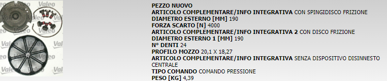 KIT FRIZIONE NUOVA VALEO COD. 801436 K421S