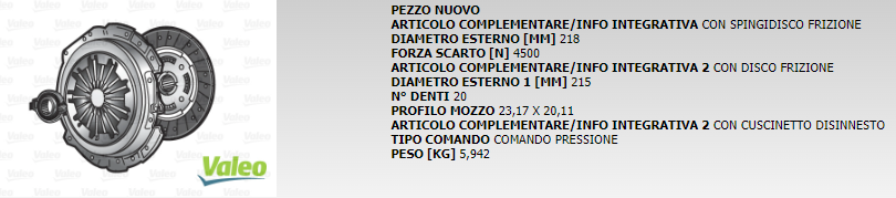 KIT FRIZIONE NUOVA VALEO CO. 801972 K464S - EX .. 821459