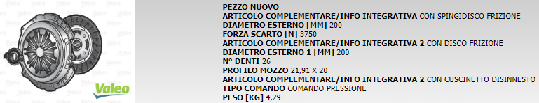 KIT FRIZIONE NUOVA VALEO COD. 821071 K480S - EX .. 821220..826578
