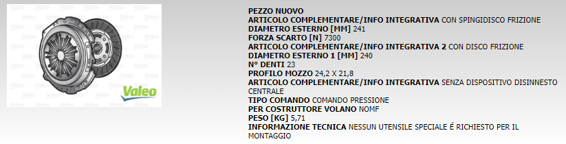 KIT FRIZIONE NUOVA VALEO 826715 - EX 828363 - 832074