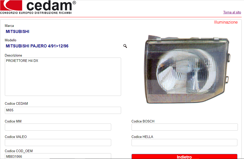 PROIETTORE ANTERIORE DESTRO CEDAM COD. MI05 MB1554603