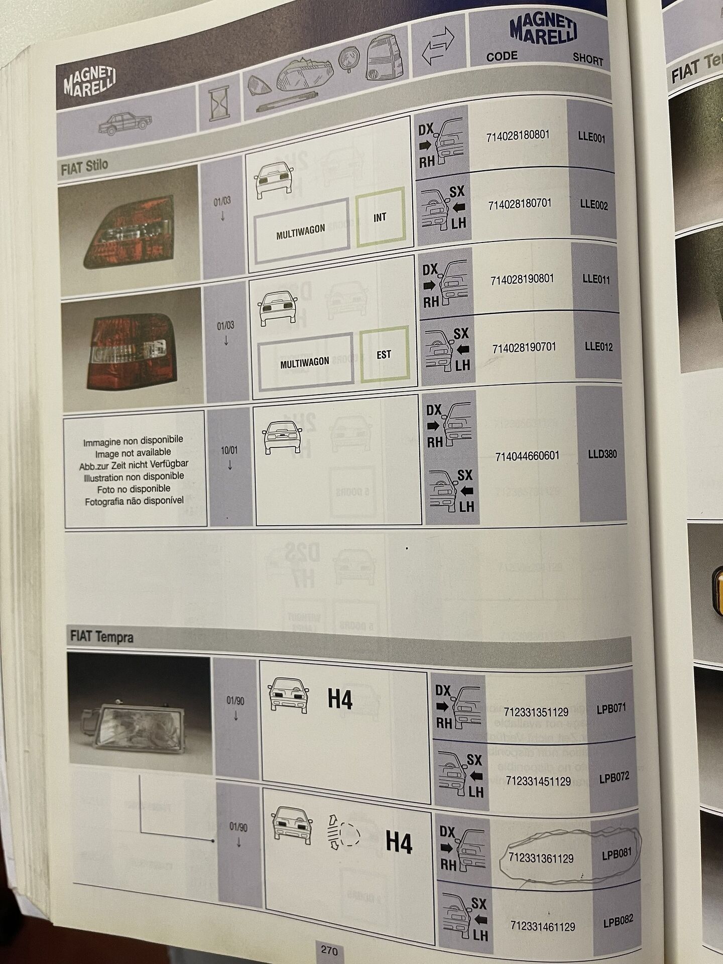PROIETTORE ANTERIORE DESTRO MARELLI COD. LPB081 712331361129