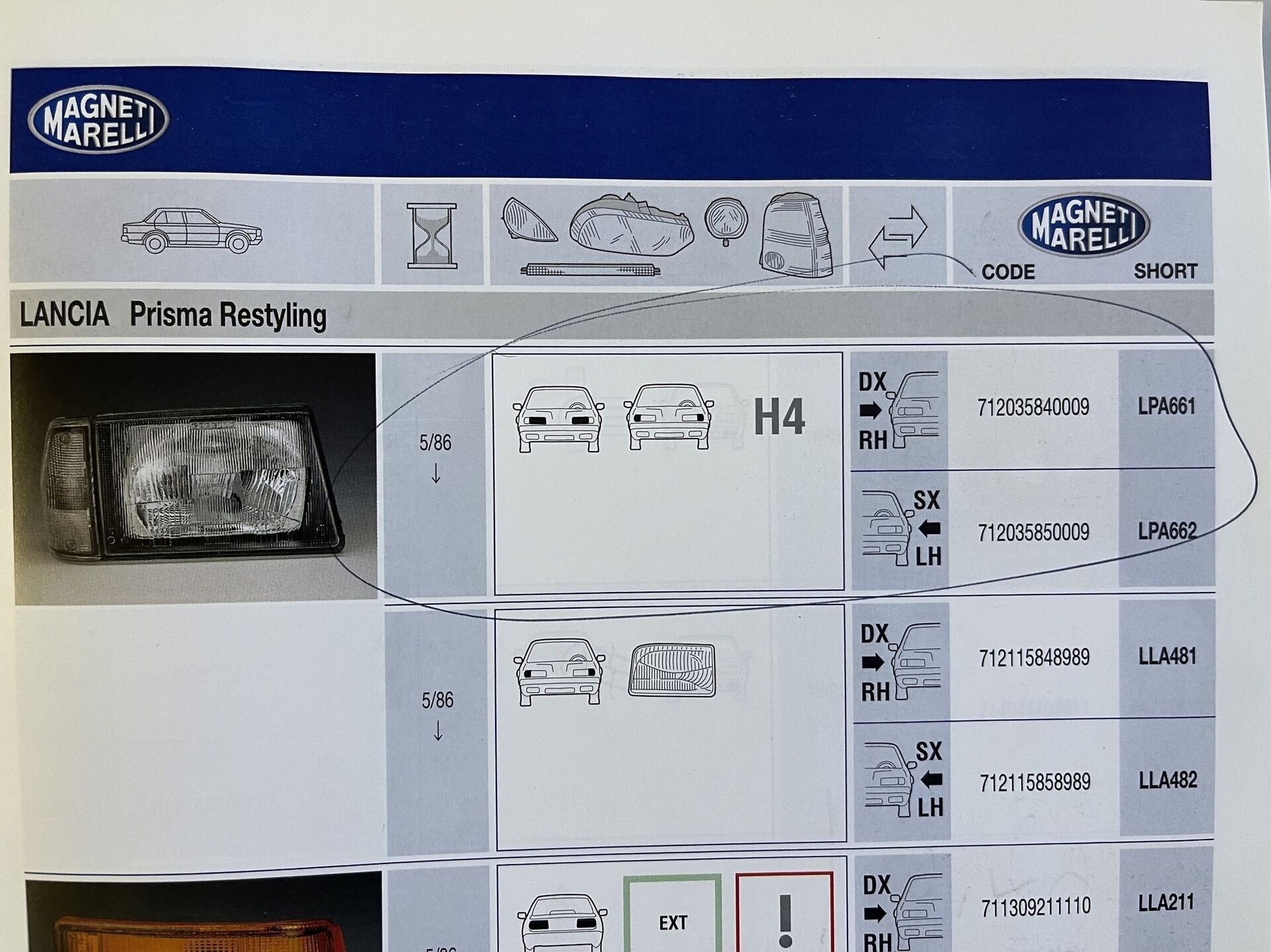 PROIETTORE ANTERIORE DESTRO MARELLI CARELLO LPA661 712035840009