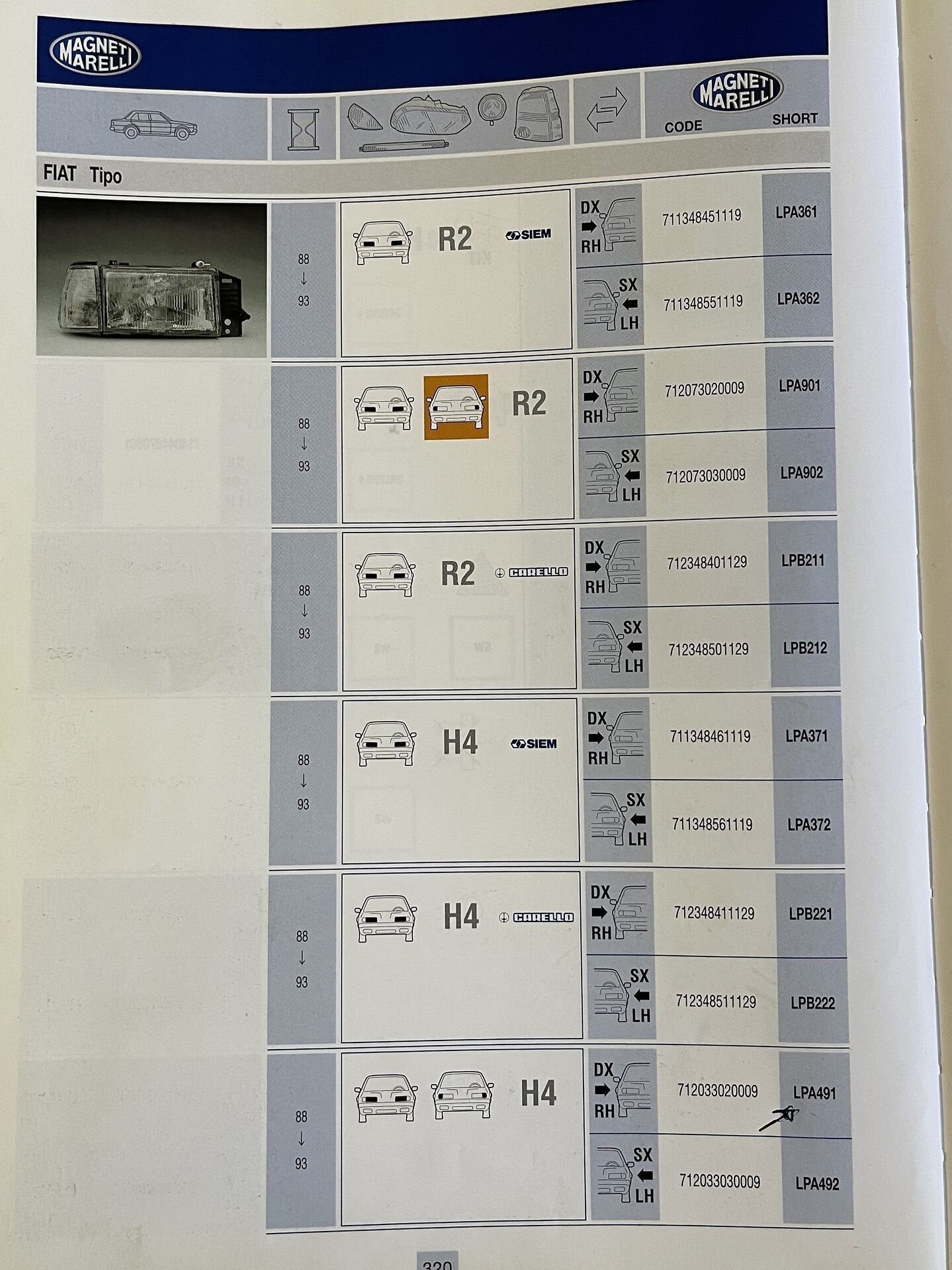 PROIETTORE ANTERIORE DESTRO MARELLI COD. LPA491 712033020009