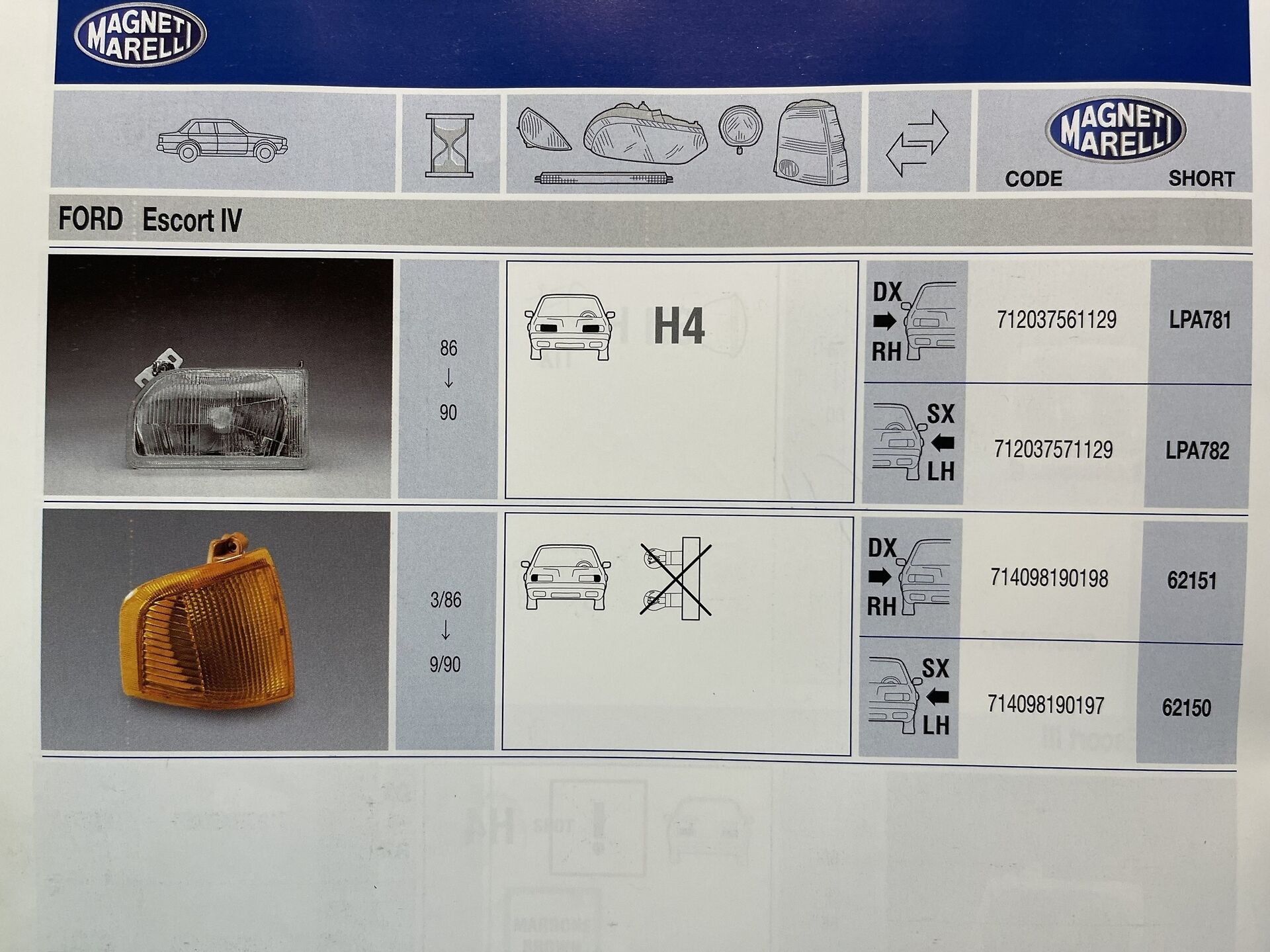 PROIETTORE ANTERIORE DESTRO MARELLI COD. LPA781 712037561129