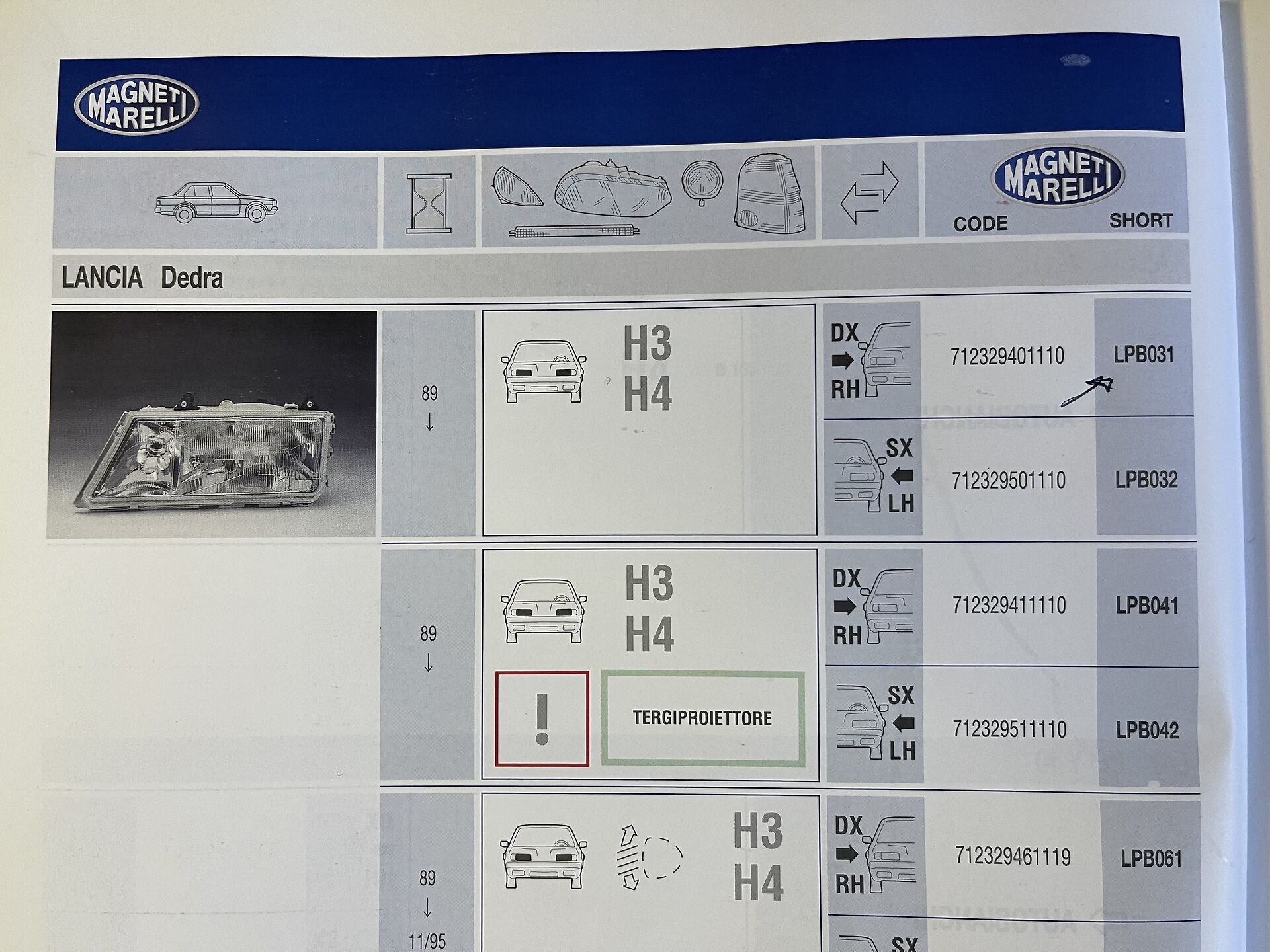 PROIETTORE ANTERIORE DESTRO MARELLI LPB031 712329101110