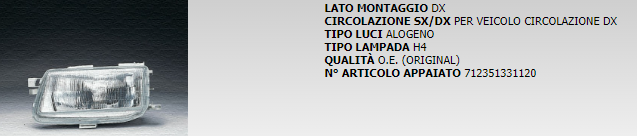 PROIETTORE ANTERIORE DESTRO MARELLI COD. LPB271 712351231120
