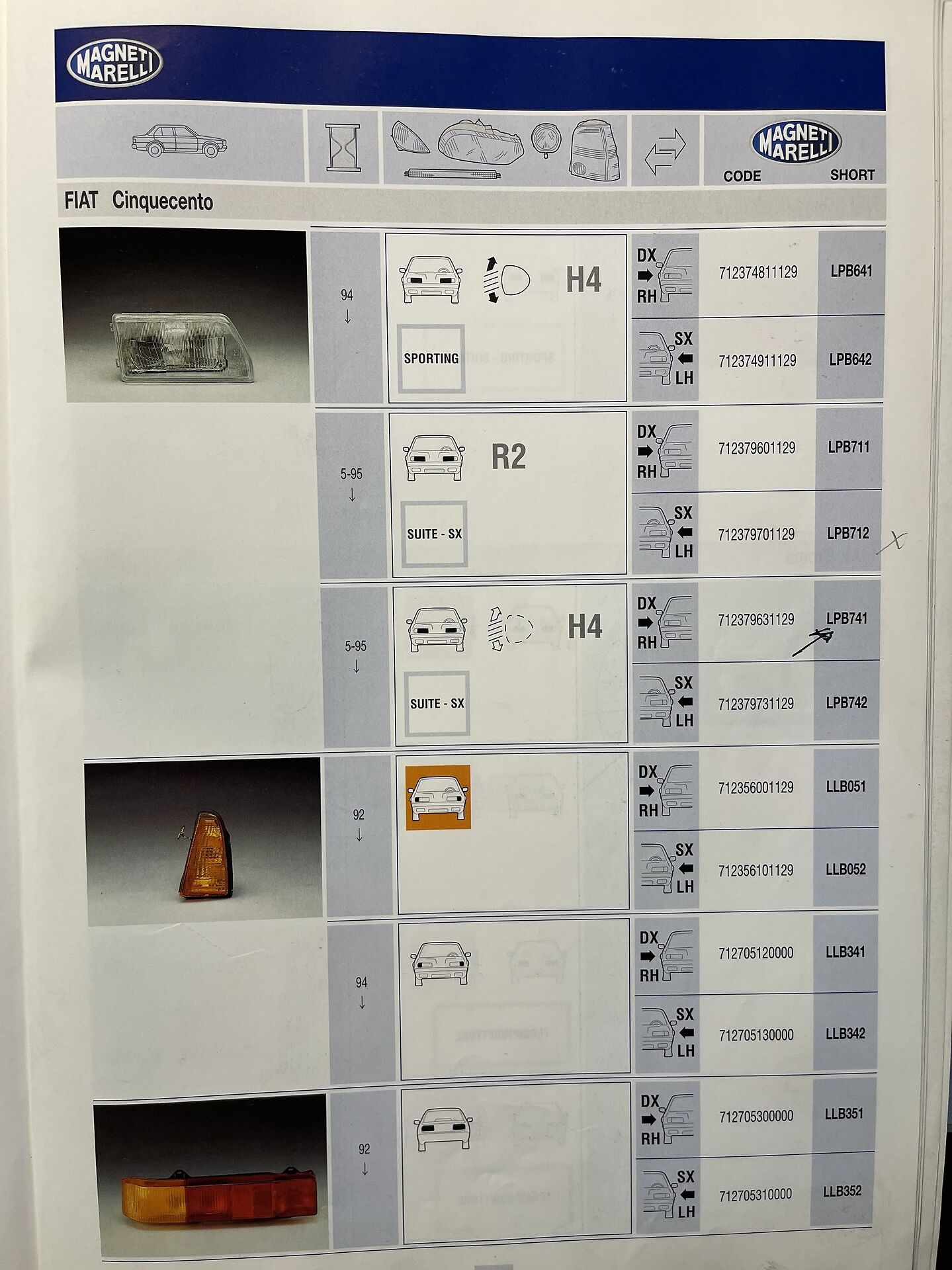 PROIETTORE ANTERIORE DESTRO MARELLI COD. LPB741 712379631129
