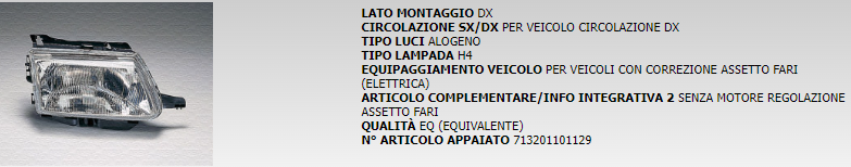 PROIETTORE ANTERIORE DESTRO MARELLI COD. LPE261 ..71301001129