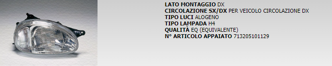 PROIETTORE ANTERIORE DESTRO MARELLI COD. LPE311 71320500129