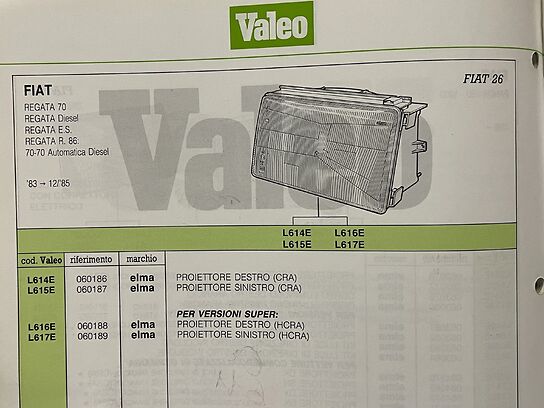 PROIETTORE ANTERIORE DESTRO VALEO COD. 60188 L616E