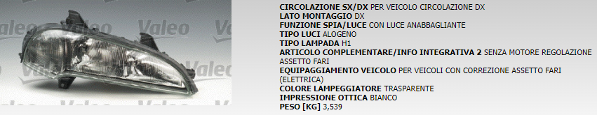 PROIETTORE ANTERIORE DESTRO VALEO COD. 85636