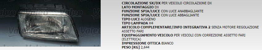PROIETTORE ANTERIORE DESTRO VALEO COD. 85730 LV398