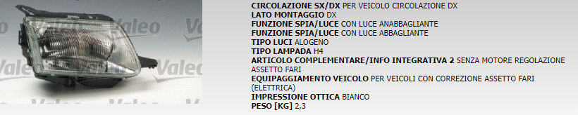 PROIETTORE ANTERIORE DESTRO VALEO COD. 85846 LV434