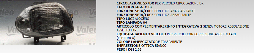 PROIETTORE ANTERIORE DESTRO VALEO COD. 86982