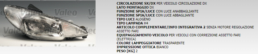 PROIETTORE ANTERIORE DESTRO VALEO 87274