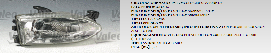 PROIETTORE ANTERIORE DESTRO VALEO COD. 87340 LV914