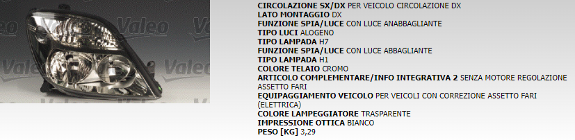 PROIETTORE ANTERIORE DESTRO VALEO COD. 87559