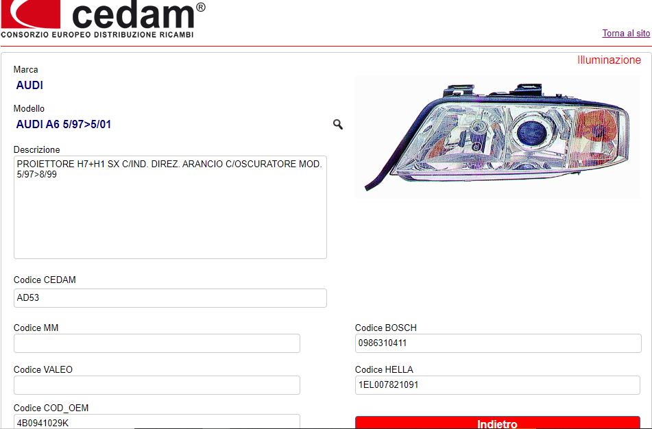 PROIETTORE ANTERIORE SINISTRO CEDAM COD. AD53