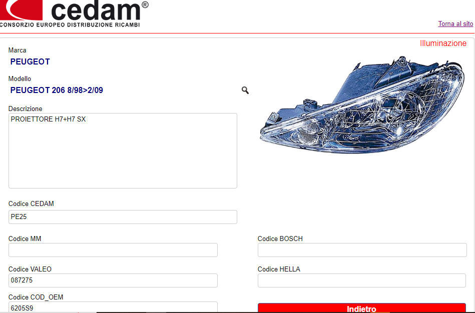 PROIETTORE ANTERIORE SINISTRO CEDAM PE25 PG0094904