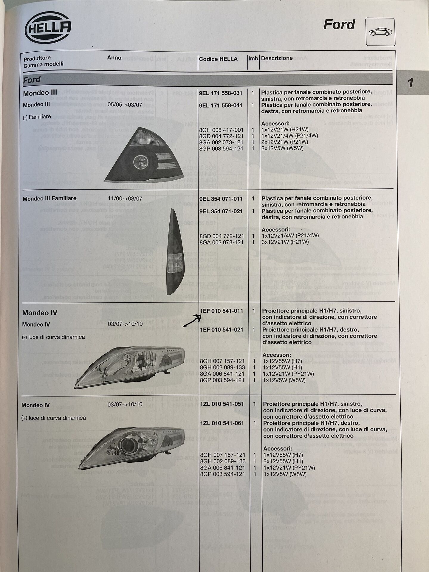 PROIETTORE ANTERIORE SINISTRO FORD 1512517 HELLA 1EF010541011