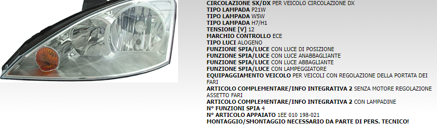 PROIETTORE ANTERIORE SINISTRO HELLA 1EE010198011 COD. TEPALUX 871275/01
