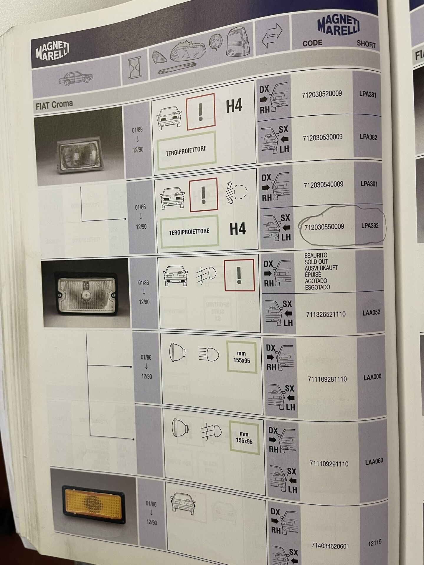 PROIETTORE ANTERIORE SINISTRO MARELLI LPA392 712030550009