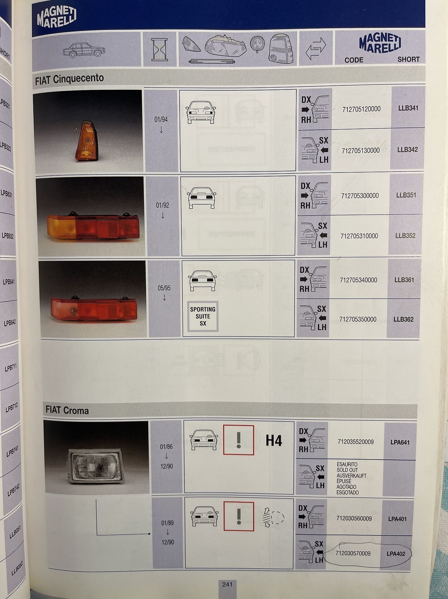 PROIETTORE ANTERIORE SINISTRO MARELLI LPA402 712030570009