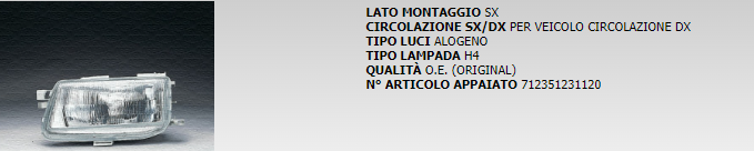 PROIETTORE ANTERIORE SINISTRO MARELLI COD. LPB272 712351331120