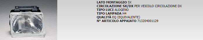 PROIETTORE ANTERIORE SINISTRO MARELLI LPE302 713204101129