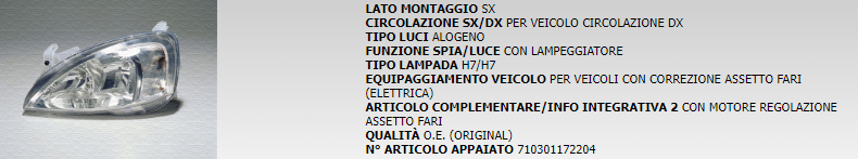 PROIETTORE ANTERIORE SINISTRO MARELLI LPG252 710301172203