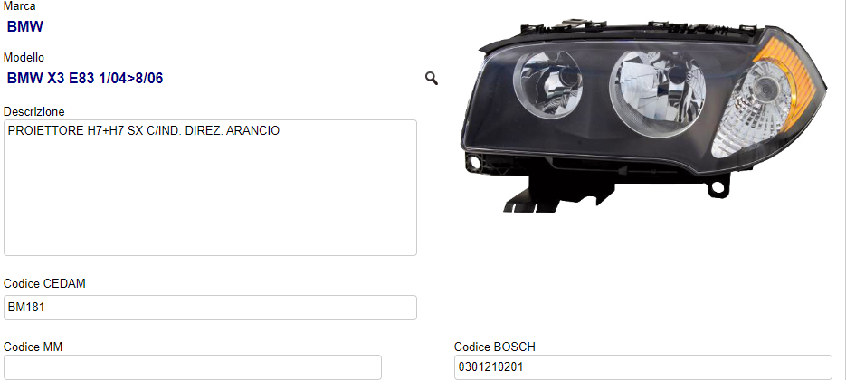 PROIETTORE ANTERIORE SINISTRO MARELLI COD. LPL362 710301210201