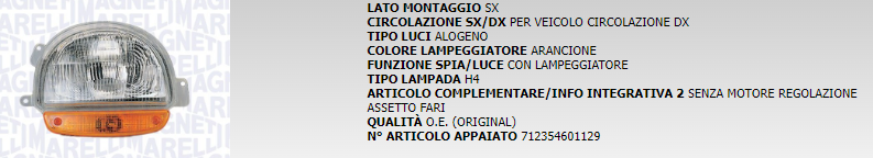 PROIETTORE ANTERIORE SINISTRO MARELLI COD. LPB352 712354701129