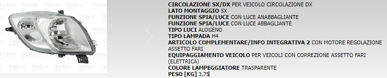 PROIETTORE ANTERIORE SINISTRO VALEO COD. 43047