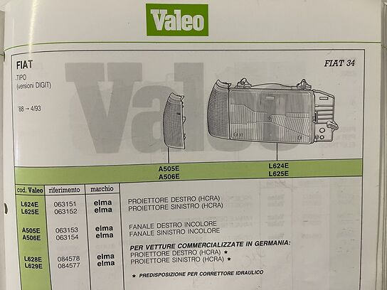 PROIETTORE ANTERIORE SINISTRO VALEO COD. 63152 L625E