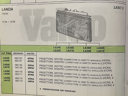 PROIETTORE ANTERIORE SINISTRO VALEO COD. L635E 63157