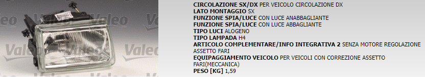 PROIETTORE ANTERIORE SINISTRO VALEO COD. 84425
