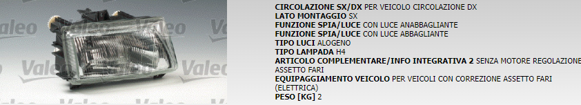 PROIETTORE ANTERIORE SINISTRO VALEO COD. 85174 LV345