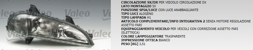 PROIETTORE ANTERIORE SINISTRO VALEO COD. 85635