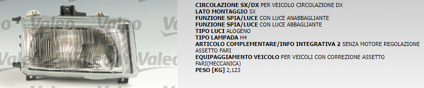 PROIETTORA ANTERIORE SINISTRO VALEO COD. 85818