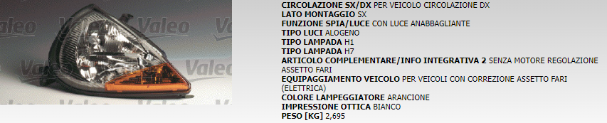 PROIETTORE ANTERIORE SINISTRO VALEO 86564