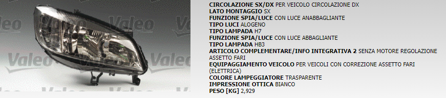PROIETTORE ANTERIORE SINISTRO VALEO 87453