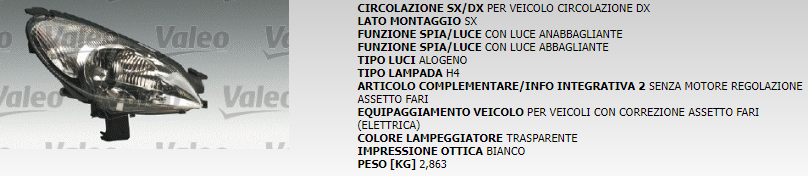 PROIETTORE ANTERIORE SINISTRO VALEO COD. 87617
