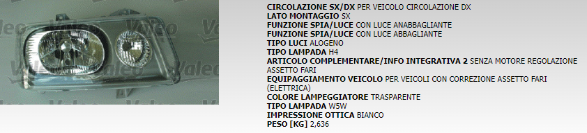 PROIETTORE ANTERIORE SINISTRO VALEO COD. 88698